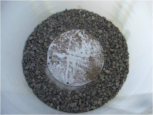 The drain channel around the circumference of the plastic tub was filled with gravel and then the whole base of the tub covered with a large circle of shadecloth to keep the wormcastings, worms and food out of the gravel and drain below.