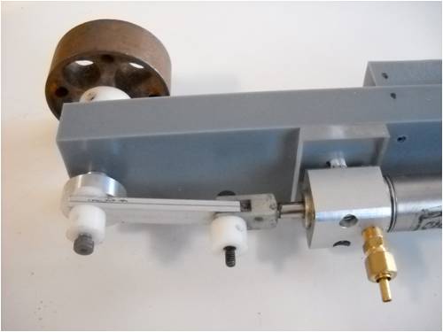 The "roller" or "piston" in this case, is at the top of this shot and is made of white HDPE plastic (stands for High Density Poly Ethylene).