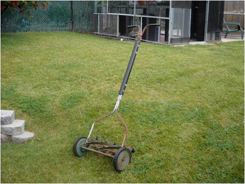 Having given away my power mower, power edger and power blower (all gas-powered) to a former gardner who found himself between a rock and a hard spot, all I have left is a push mower designed for a midget.