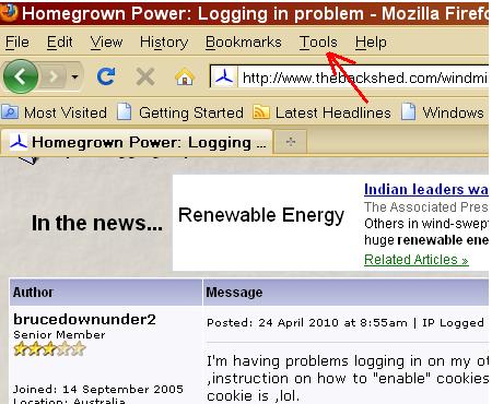 I'm having problems logging in on my other laptop,,says I have to enable "cookies".. Can someone give a step by step ,instruction on how to "enable" cookies-I'm a real dumb ar%e when it comes to computers ,,,I don't even know what a cookie is ,lol.