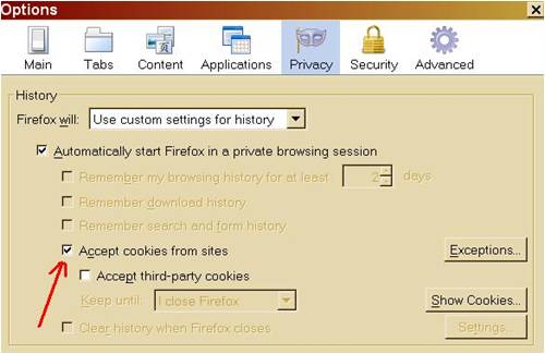 box, To enable cookies the check mark must appear in the box. IF the box is