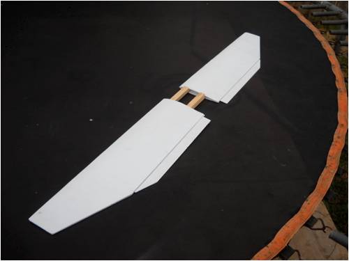 Here are both wing halves lying side by side on the kids' trampoline