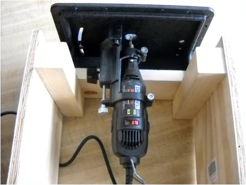 Here's what I came up with. It's a "Dremel" router table. I picked it up from Amazon.com for $30 including shipping. It's all plastic (except for screws) and it holds my 110 vac electric Dremel high-speed drill thingy.
