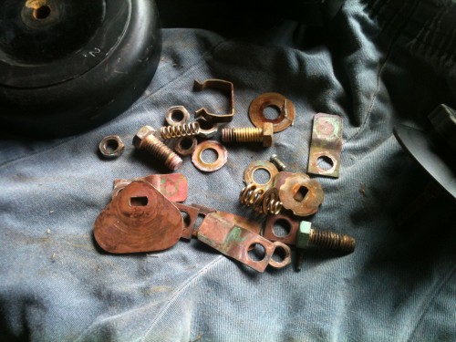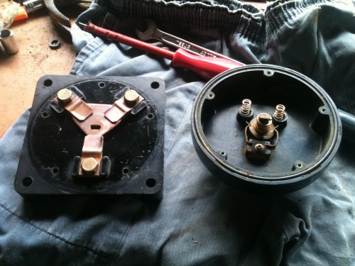 The big battery selector switch caught my eye, so I dragged it home and pulled it apart. Its mostly copper, brass and bakelite, so survived floating in the ocean. A few steel washers and cir-clip had disintegrated though.