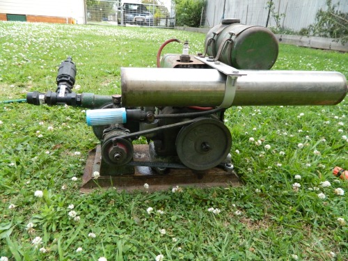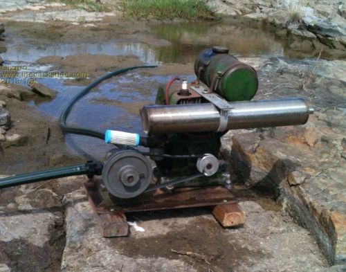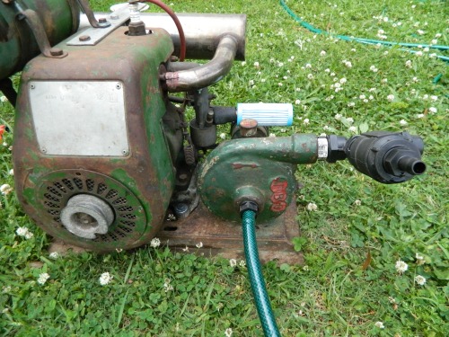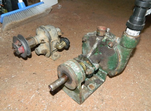I rigged it up to a old centrifical pump, also in pretty good condition. Ratio was about 1:1.5, so the pump was running slightly faster than the motor. With the motor running I primed the pump with a garden hose connected to the water mains, and then put the hose into a bucket of water to see how well it pumped the water out. Results were dismal, no more than a trickle. So I need to rethink it. I guess I could be doing two things wrong, not enough pump speed, and/or, pump outlet at side, leaving a air pocket in the top 1/3 of the pump. I did prime the pump, but it would still have the air pocket, and I guessed once the pump was running the air would be driven out, maybe not. I can fix that. Maybe I need much more RPM, I do have a bigger pulley I can machine to fit the motor, making it about 1:4 ratio. I also have a little gear pump, which I've used to pump water before. Would it be a better option?