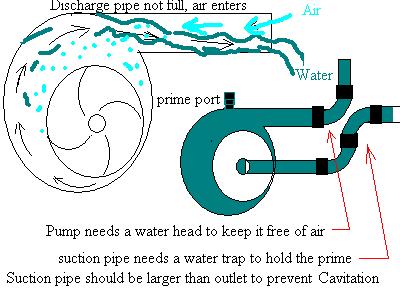 if it does not pump water when the garden hose is giving you positive pressure on the intake, then the impeller is blocked with crap on the inside. it will need to be poked out from the outer towards the centre as there is a taper in the chamber. If it pumps with a positive head then, to make it lift as Bob says, it needs a footvalve and screen (and the footvalve needs to be vertical in the water) on the suction hose to help get it started. we all take shortcuts with priming if we can get away with it. The way it is done by the book is with a small daiphram hand pump on the delivery side. shut delivery gate valve open line to hand pump suck water through the pump close line to hand pump (so it doesn't blow up with water pressure) start motor open delivery gate valve look smug with a bit of technique you can dump the footvalve up and down and don't need to bother with proper priming these pumps are a low pressure/high flow pump they work best with little or no restriction to the output so if you want less water you throttle the motor right back rather than screwing the tap off, should be no problem with RPM. I'm confused, no wait... maybe I'm not... |
