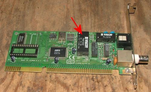 As you can see, they are tough little buggers, built to last. So to use these inverters, all you need is a 5 volt regulator, like a 7805 for a couple of dollars from Dick Smith, a 10uF cap on the 7805 input, a 1uF cap on the 7805 output, and thats it. Bet you wish you never threw out those old network cards now dont ya