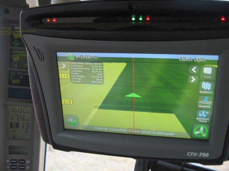 I have had these units for 3 years now. They are a tenth of the price they were seven years ago and they work a treat. Basically I map the first pass with the tractor and implement along the fence and show the machine the line, then hit the touchscreen icon in the right hand corner and the machine drives the line for me for the rest of the field. With the modern no soil disturbance methods of cropping, it is very hard, if not impossible to see where I have already been. This takes all the guesswork and mental fatigue out of the day (and the sore neck from continually looking behind).