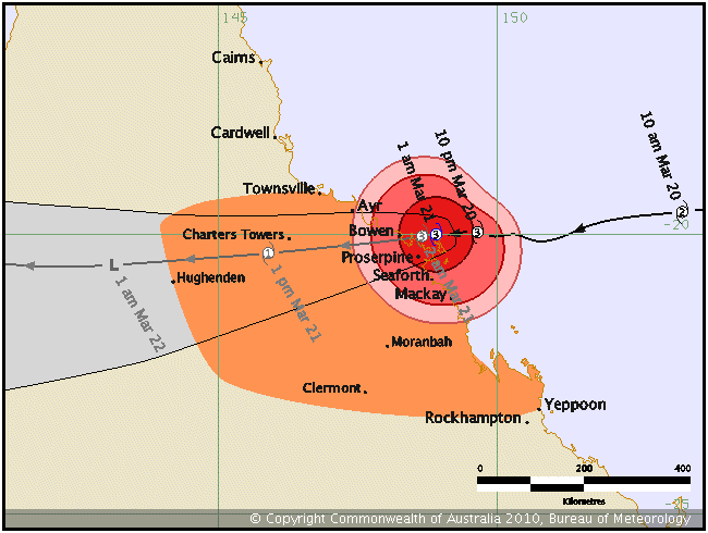 We too have survived the cyclone. The maps posted above show we were just on the edge of the bright red centre. For those who don't know, I live just south west of Seaforth, 9km north of Kuttabul.