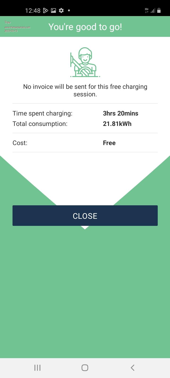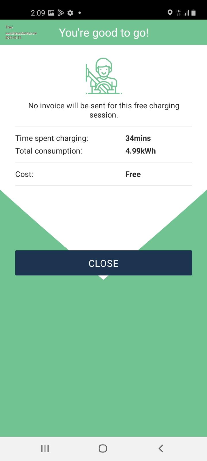 Total paid for electricity $62.76 Quite a few free charges. Edited 2023-03-17 07:54 by TrevTrev @ drivebynature.com