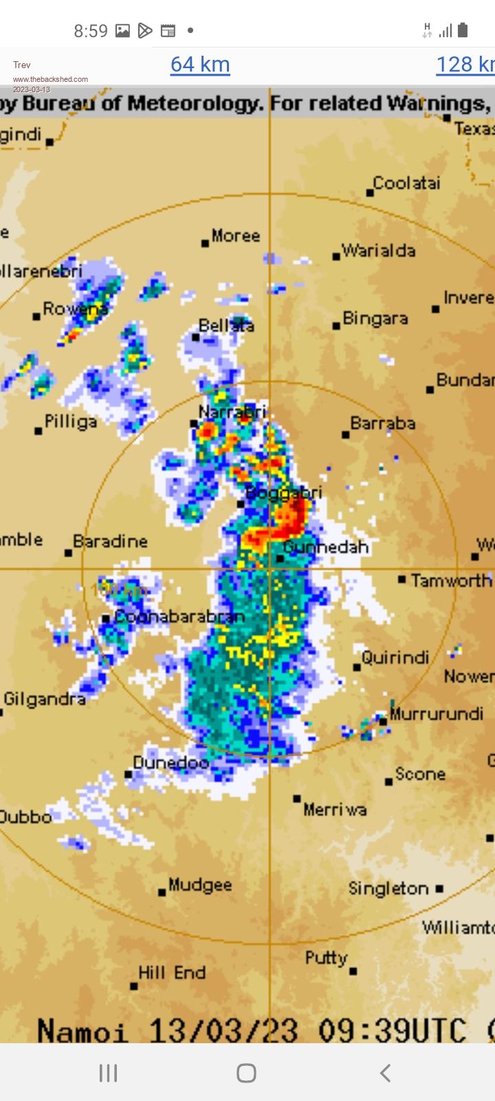 Charging here at Mackellar Motel, Gunnedah, and lots of wind and lighting. A storm is coming in. From the bom website