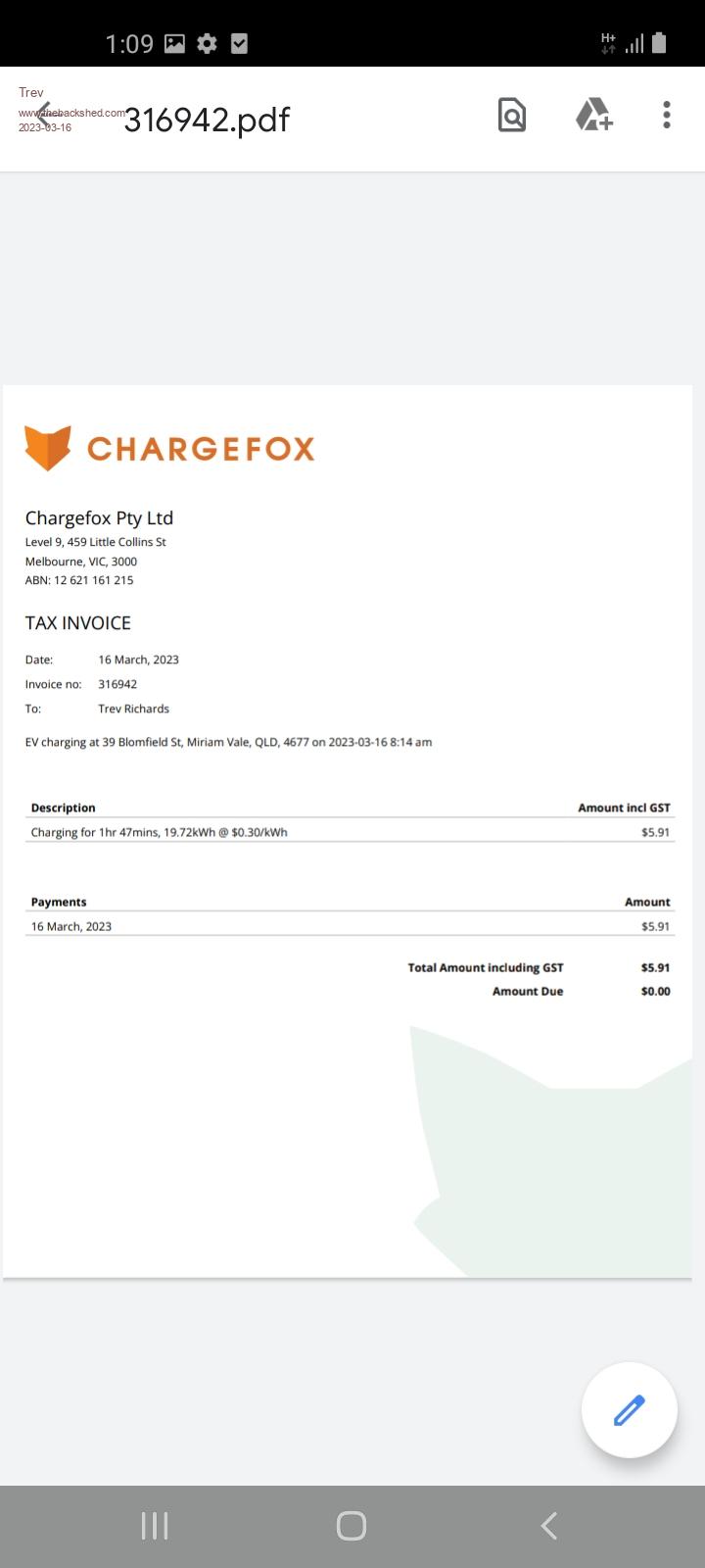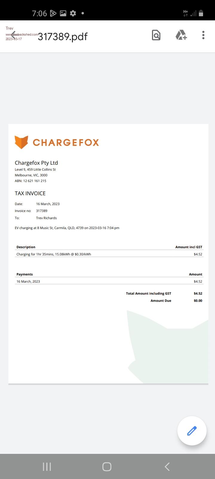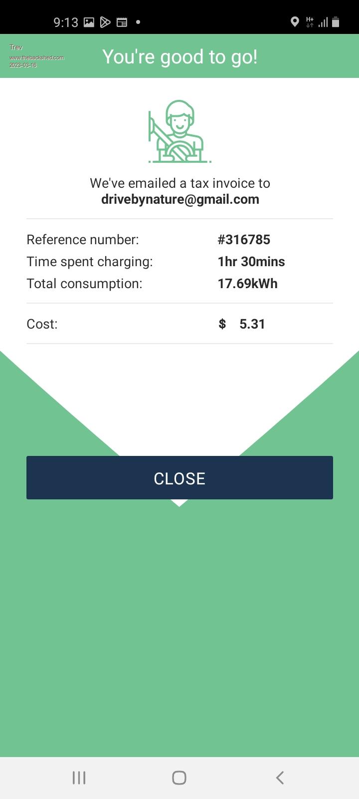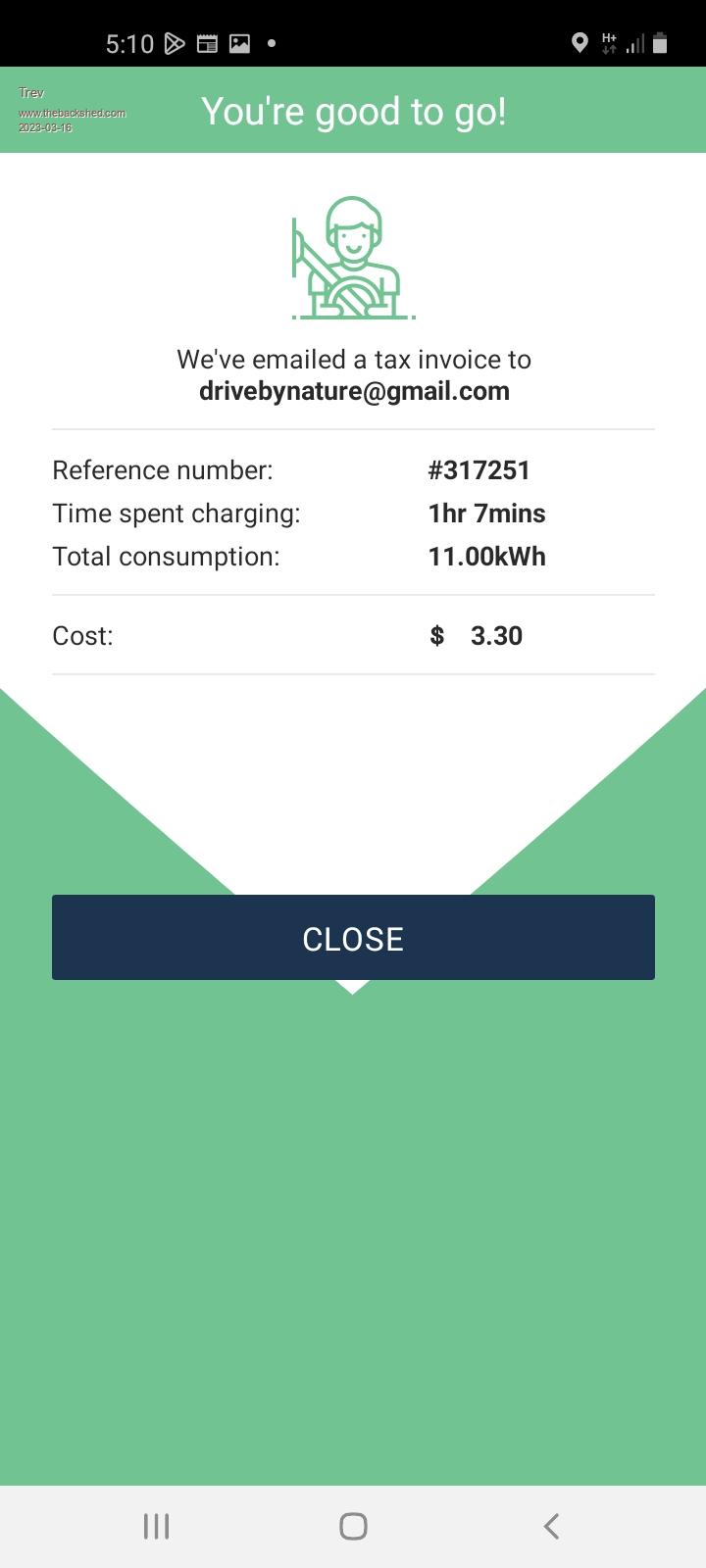 I lost the chargefox page for a screenshot, so wait for invoice in the email. Screenshot for Miriam Vale Cost $5.91
