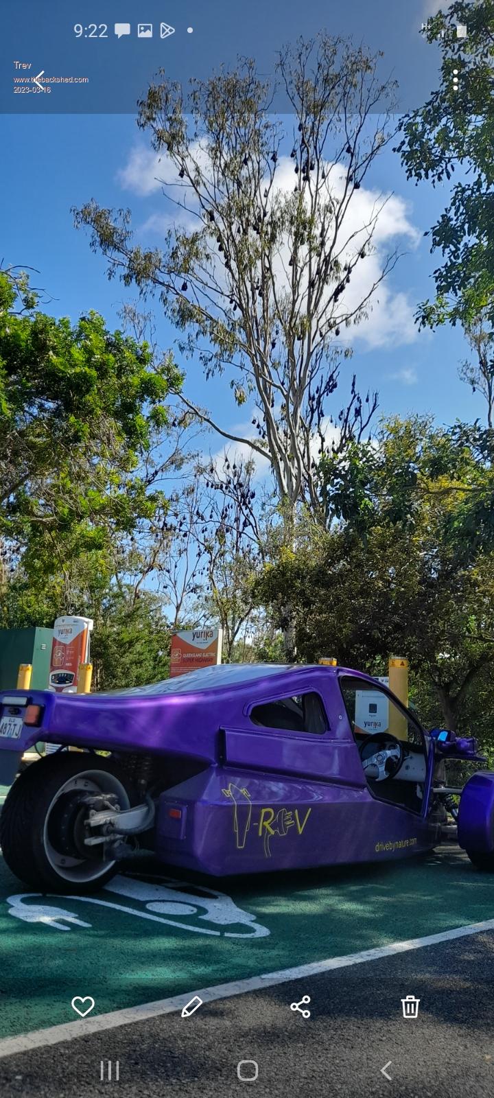 Charging at Miriam Vale. Thousands of flying foxes all around here. And they are all squawking.