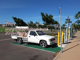 One charge point didn't work on this trip as well, Childers. Spent around 2 hrs on the phone to chargefox support with no success to get this charge outlet functioning. See the 2 red lights on the charge outlet in the background. They kept trying to reset the fast DC charge outlet, even though I told them I can't connect to the fast DC outlet. I told them over and over again I needed the Type 2 AC outlet. A guy from chargefox rang me 2 days later and said the Type 2 AC hardware was broken and had no idea when it would be fixed. I managed to work my way around this problem, and still did not have to use the generator.