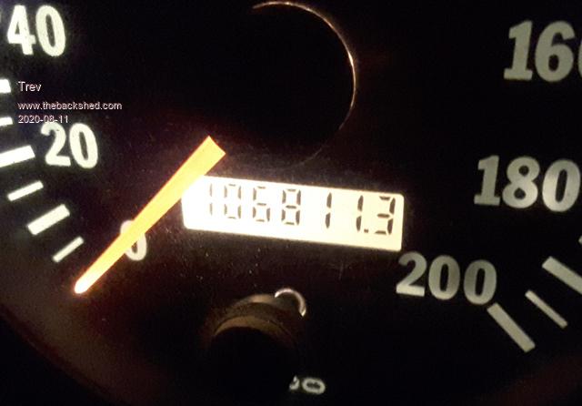 The VDO speedo now has 120248.9km on it. Last years reading was 106811km. That makes 13437km for the year. (we have T-Rev registered so it does some of the driving)