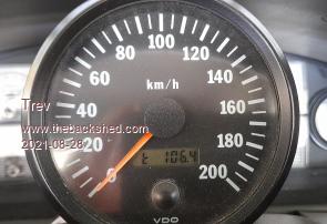 VDO speedo reading is 106811km now minus last year recording of 88599km (in Sept) makes 18212km for the year. Not as many km's this year, as recorded late last year and no EV shows this year.