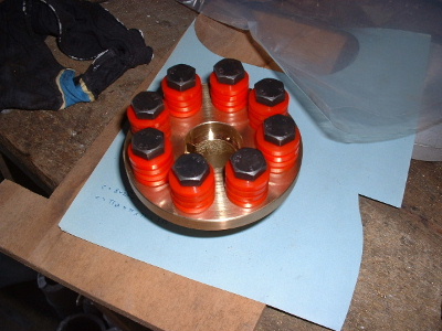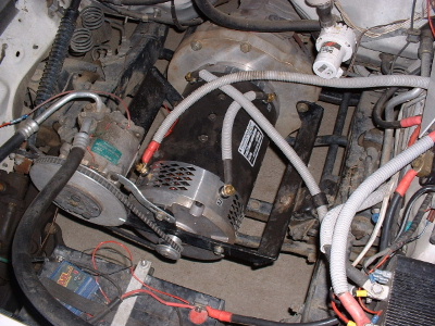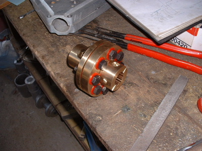 Some changes to the EV. New motor, same as the old one, but with a shaft out the front to fit the airconditioning. The airconditioning pump does not show any variation in the amp draw of the motor. Nothing wrong with old motor, used for testing on Foxcon aircraft test rig. If anyone wants to buy it let me know. After removing old motor, found that he spline from the centre of the clutch plate was almost all worn out. It had rusted slightly too, so was extremely hard to get off. A new flex coupling was cast and machined out of Manganese Bronze. The part that fits the spline of the geabox shaft is clamped with 2 bolts through the sides. The part on the motor has a bolt in the end of the shaft. The only movement now is on the red washers, easily replaced. This is the same design as the coupling that we make for Foxcon, the connection between Subaru EA81 motor and reduction drive box on their aircraft. The power steering will be changed to a small 12v unit. Edited this motor was fitted with speedo reading 347555 Trev @ drivebynature.com |