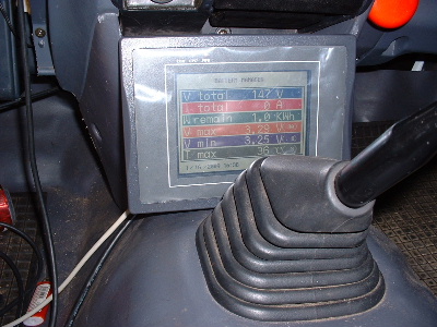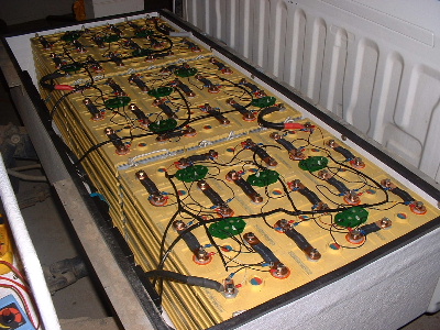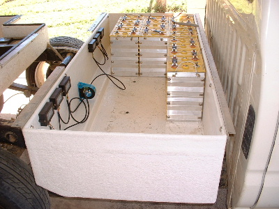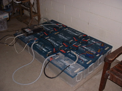 Had done some driving in town to see what range may be possible with the Pwersonic AGM batteries, at town speed and driving conditions. I did not drive continuously until batteries were empty, but in approx. 50km I had used less than half the power according to the Curtis fuel guage. I think it is safe to assume that 120km or so should be acheivable. There is no sign of power or capacity loss with these Powersonic batteries, but the new set of Thundersky Lithium batteries have arrived, so the Pwersonic batteries will now take on a different role.... wind and solar power. The 2 dirty ones (outer corners away from the wall) were the ones in the back box. 768kg out. Speedo reading was 350153 minus original speedo reading of 340092 = total distance driven of 10,061km minus the couple of weeks with the first set of lithium 635km = 9426km. Not bad at all, with no sign of slowing down yet. Trev @ drivebynature.com |
