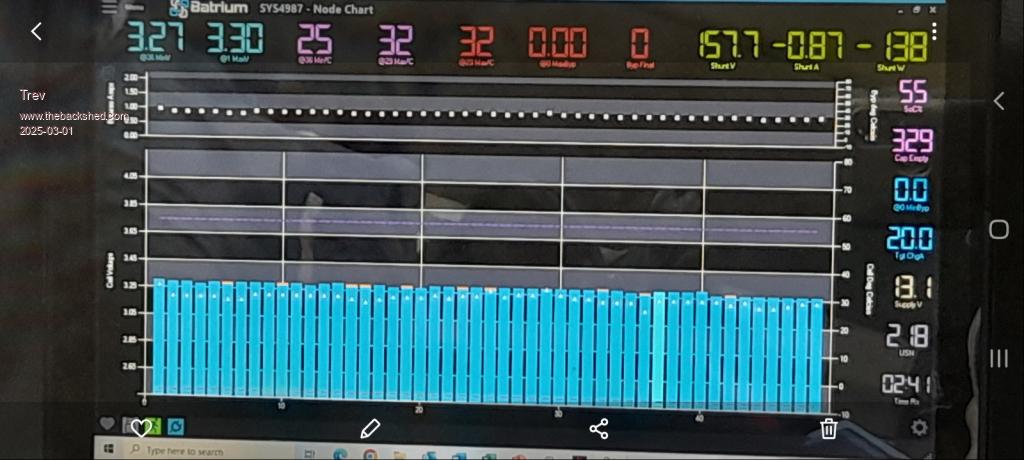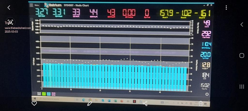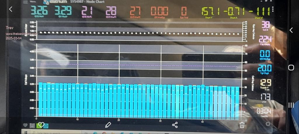 Not quite full. I shut off the charge at 98%. Battery temperature kept shutting down the chargers. I have the BMS set to shut them down at 48C. So from 90% to 98% I could only run 3 chargers to keep the temperature down. A very hot day.