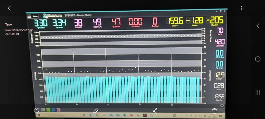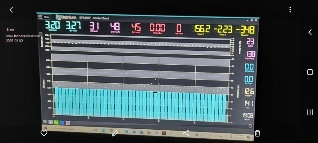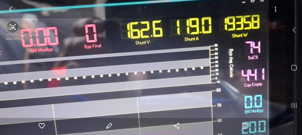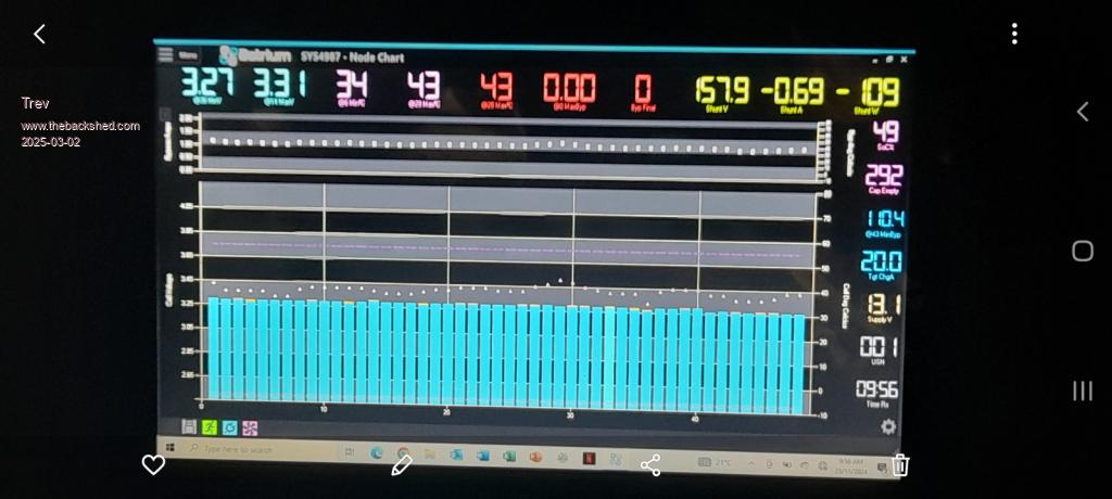 Heat on the batteries became an issue again at Cooroy. The last 7% was charged at 80A. I had to turn 2 chargers off to keep temperature below 48C.