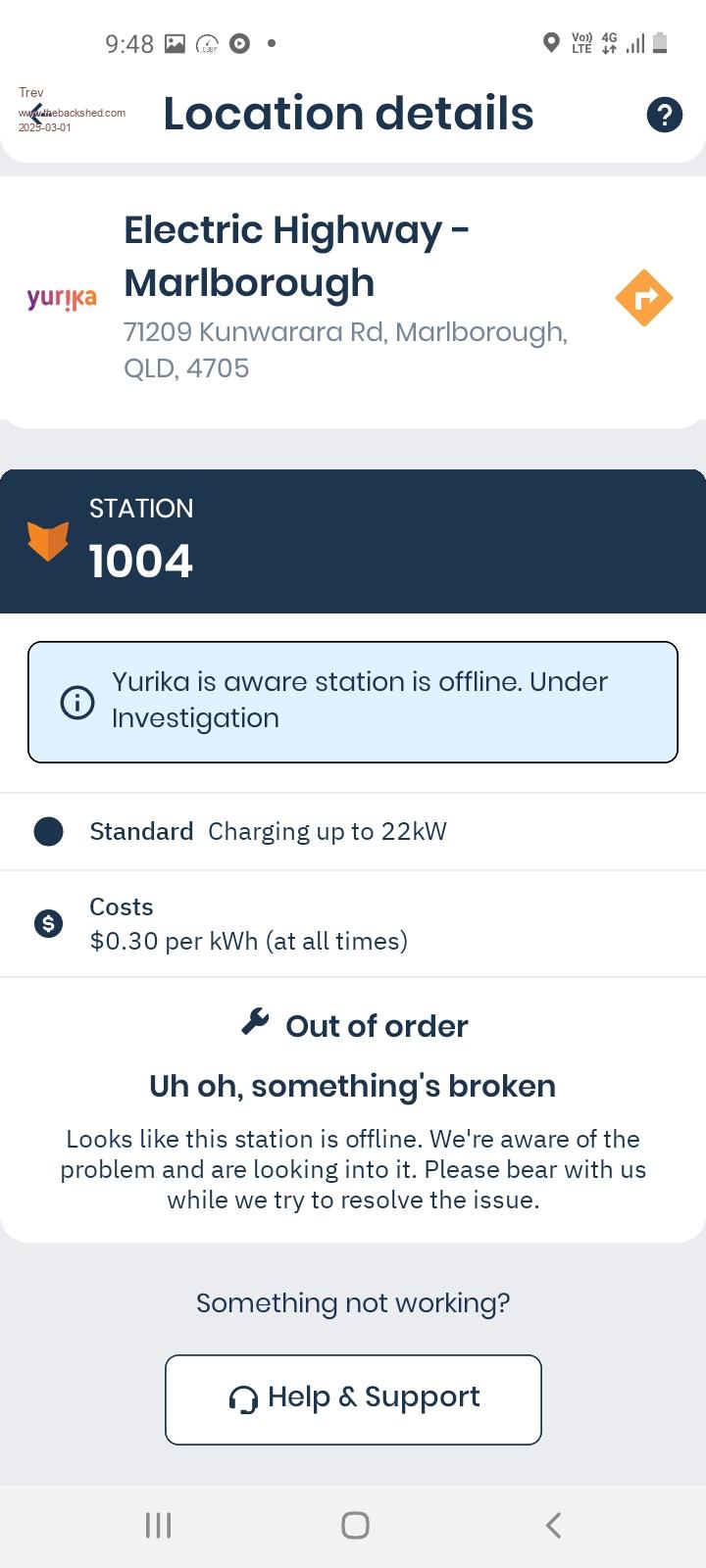 Arrived at Rockhampton shopping centre and found the charger outlets were out of action for maintenance.