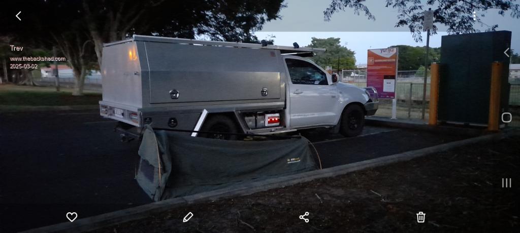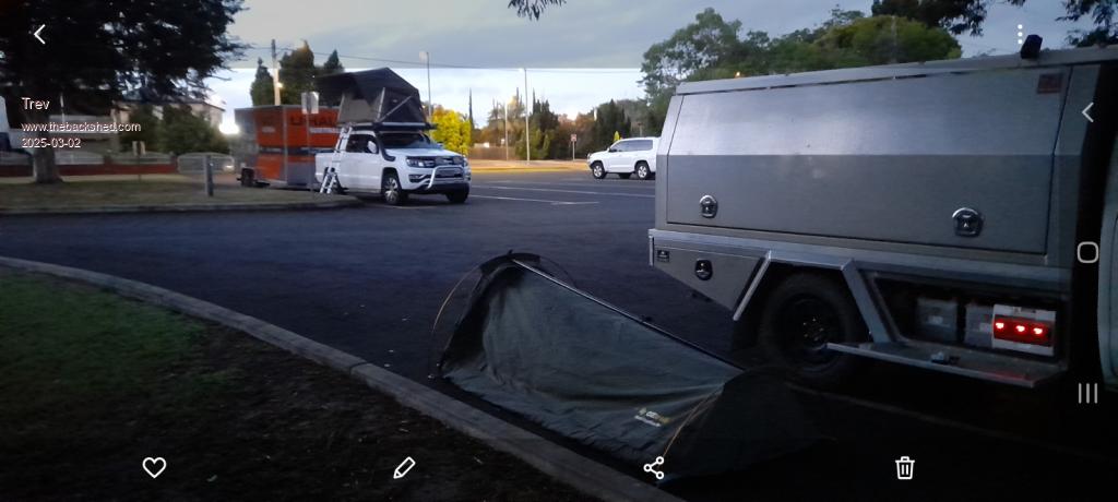 Arrived at Childers free  RV and Camping  at 11.53pm. Plugged in and set up swag for a sleep. Picture this morning, day 2.