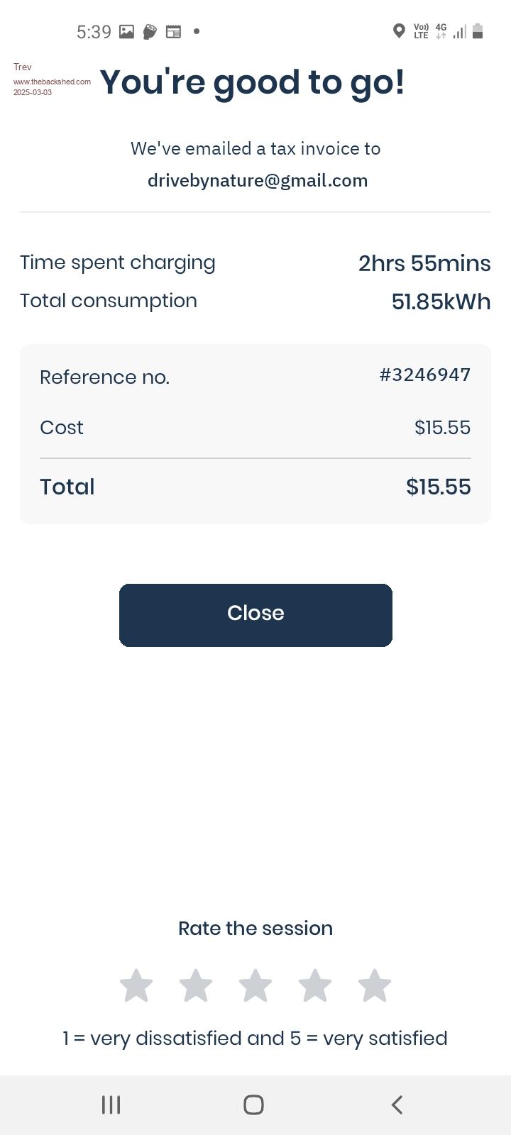 No charge data from Mid Coast Council as it is a free outlet. Thanks heaps. I noticed 2 new wall outlets and wires hanging out of the wall for a third outlet