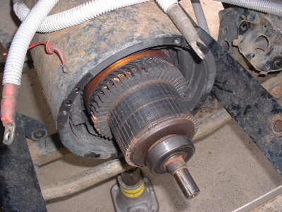 More in and less out = burn out... and thats not talking about the physical damage the copper wires in the dying brushes are doing dragging and spot welding onto the armature.... and possibly bits lodging themselves in between the armature and the field shoes.... maybe that explains the copper bits that appear to be stuck to the shoes in the pictures.
