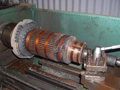 I removed the armature and spun it on the lathe. Cut a little on comm bars and can be seen in the pic. The shiny patch has been machined.