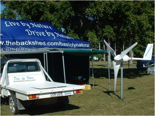 We have discovered how long a set of brushes lasts. This double shaft motor was fitted 347555. Speedo reading now is 384868. That is 37313km on the set of brushes. I would recommend changing them sooner than this. I run out of brushes, 3 car lengths from the traffic lights, in peak traffic. I just had to push it off the road. The Hilux is sign posted too. The word Electric on both sides and rear, as well as “Drive by Nature” and the website written on the vertical board at the front of the tray. Here is shot from our day at Eco Expo. You should be able to see the signage.