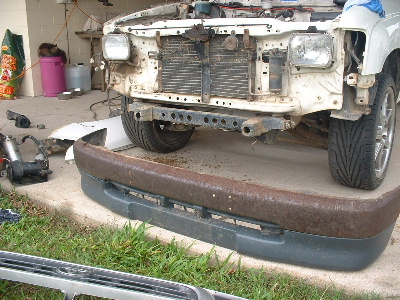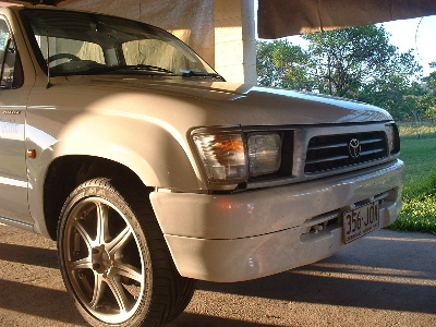 But with the face lift on the EV Hilux front, I decided that the front carry bar should be mounted better, mounting it on the chassis instead of on the bumper. So welded up the holes in the bumper before painting.