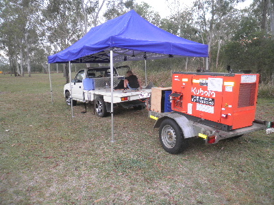 We looked further into some options. Not enough time left to consider more with small generators. We tried a number of hire businesses but nothing. The expense seemed too high on options that were available. Diesel generators were available but thought to be close on 1200kg for a 15kva. I would not like to dump that on the ute tray (too heavy for my trailer) and drive to Brisbane.