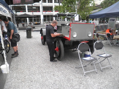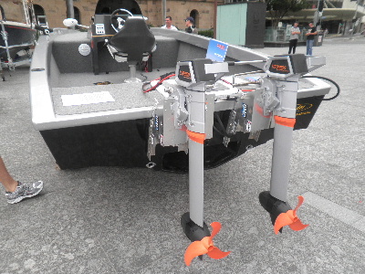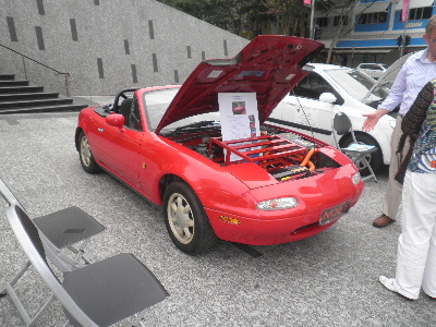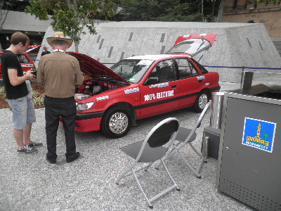There were boats, scooters, push bikes, along with many cars. I did miss the Telsa roadster though. There was supposed to be one at the show, but I heard a rumor that the truck bringing it had broken down, so no Tesla. There was an old vintage electric truck, just to show that electric drive has been around for a long time. Some great work by many EV converters too. Graeme from Suzi Auto had a few of his cars there. It was great to see the Honda Civic with Ultramotive carbon motor and Tritium speed controller. The guy making the Prius plug in battery packs was there. I have a special interest in boats and so had to check out the carbon fibre 'Gold Rush' speed boat. Only 2 x 4kW Torqueedo motors and able to do 28km/hr.