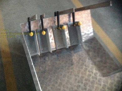 All are handled one at a time. Cells are clamped together using 6mm stainless steel threaded rod, 3 on each side. The font of the box is used as one end plate and the back end plate 3mm alloy checker plate with the top and bottom 10mm folded for stiffening. The centre end plate, is one plate, right across both centre rows of cells. So cells are clamped to the front of the box and down through the steel rails underneath. The cells cannot move.