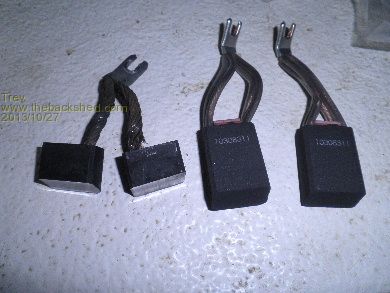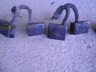 I have now changed the brushes in the WarP 11 motor. The motor was fitted 384870 and the speedo reading now is 444158. That is 59,288km driven on the original set of brushes. They won't do much more. I don't want to run the risk of running out somewhere, or, damaging the motor. Some have worn differently, and are different length than others.