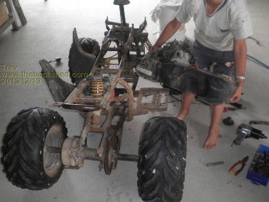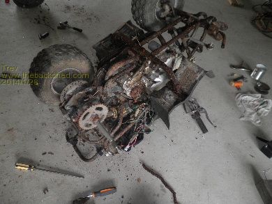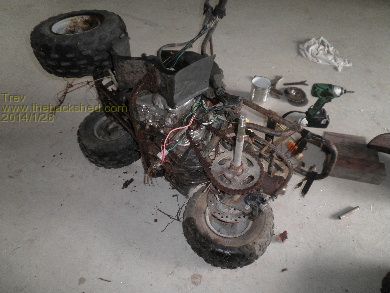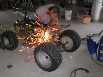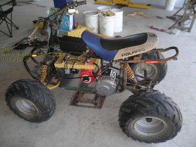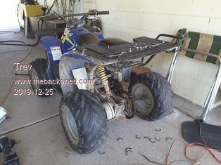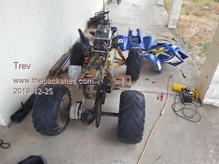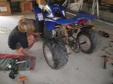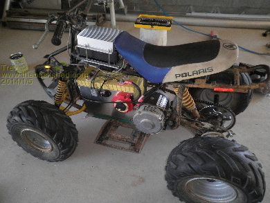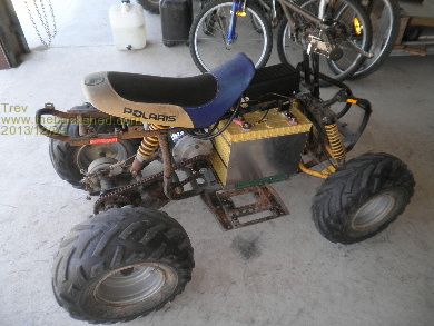 Converting a 4 wheeler motor bike to electric drive has been on the cards for a very long time. Dale (son) and I bought a Polaris Scrambler 90cc many years ago. I also bought the 12v speed controller many years ago, which would be around the time I took out the 12v motor that used to drive the power steering and air conditioner in my EV Hilux. The plan was that this 12v motor would be the drive motor for the 4 wheeler. Today we started stripping the scrambler. Some great Dad and Dale time together. Though this is nothing new, we do a lot together. Dale is great on the tools. Spanners, sockets, impact wrench, and so on. I will wait a little longer before I let him on the grinder though. We pushed it outside to gerni it all clean. Then back in to work out all the positions of components. Some brackets that will not be used were in the way for mounting the motor, so they were cut and ground off. Trev @ drivebynature.com |