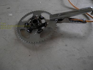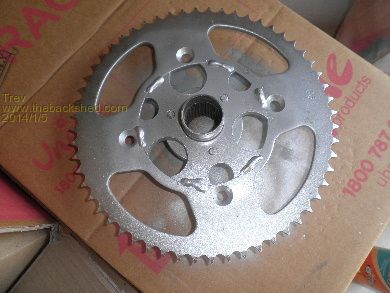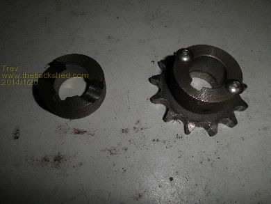 We changed the front sprocket to a smaller one, 13 teeth. It had spline on the inside, which I machined out so it would slide onto the motor shaft. Being a very hardened sprocket, I did not attempt to cut a keyway into it. I made up a small boss that is screwed to the sprocket. To be held on the motor shaft, an extra peice had to be made that fitted over the head of the screws. This made a ratio of 56:13 or 4.3:1. The acceleration was much better, and very reasonable. Dale has had a lot of fun riding it around. Tinker, the double reduction was already on the cards, and is now in progress. I will post more on that later. Trev @ drivebynature.com |