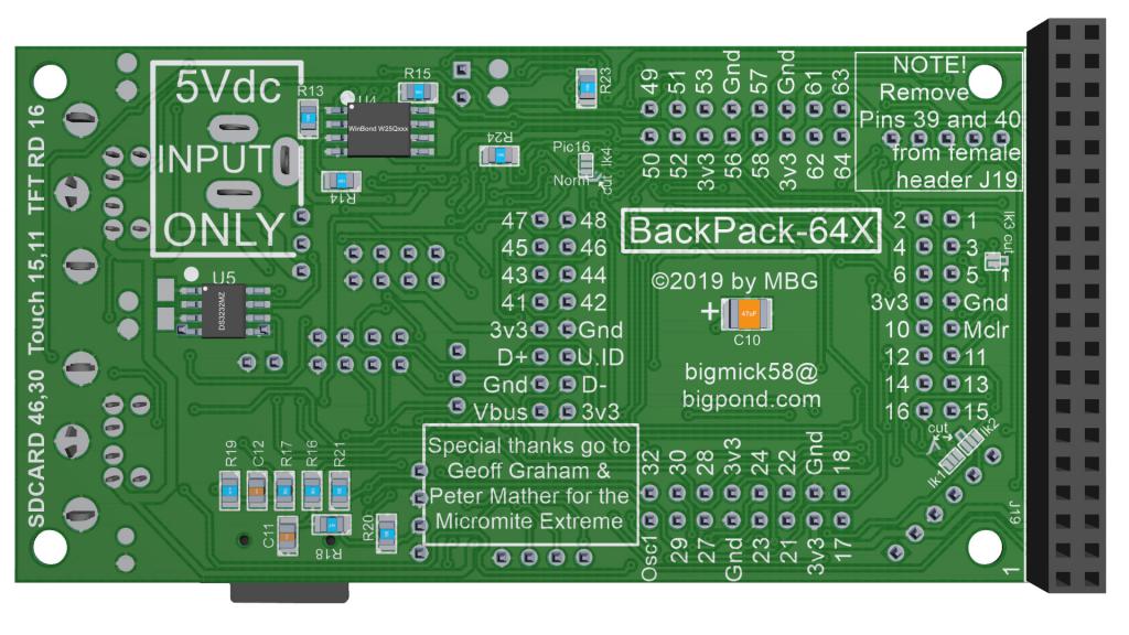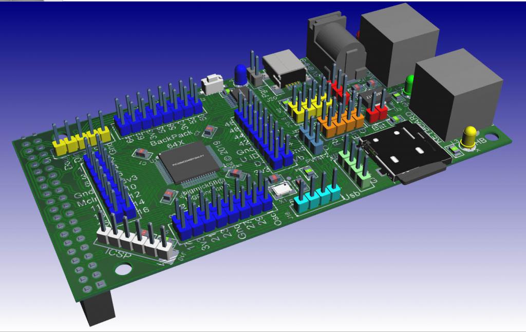 Hi All, Its about time I released another of my `MBG' boards into the wild. This is my second favourite board, behind MuP3, the >>> BackPack-64X <<< As its name suggests it is a piggy Back board for a 40pin SSD1963 TFT screen with Touch support. It is a 64pin MM Extreme chip on a 100mm x 50mm PCB It has many included options including the folowing PIC32MZ2048EFH064-250I/PT 252MHz Processor (also compatible with the PIC32MZ2048EFH064I/PT 200MHz chip) Plugs directly to an SSD1963 based TFT with touch screen support PS2 keyboard support PS2 mouse support USB keyboard support MicroSD support On-board micro-bridge PIC16F1454/5 for USB programming and flash updating of the MZ chip. On-board DS3231/2 high accuracy RTC chip On-board Winbond W25Qxxxx serial flash memory support Convenient headers for SPI-1, Comm 1&2, Dual I2C connectors (in parallel), PWM-2 and indeed every CPU pin. Powered by a 5Vdc 2.1mm barrel jack (preferred option) or via USB with mind to current limitations All information relating to the board, including PDF manual, can be found in the link above. Here are the Project files for DEX-PCB BackPack-64X BackPack-64X V13 FINAL.zip The USB/Audio Daughter board USB Audio.zip Here are the Gerber Files. BackPack-64X BackPack-64X V13.zip USB/Audio Daughter board BP64X_USB_AUDIO.zip I suggest getting the board done in 1.2mm Fibreglass Some Images ![]() ![]() ![]() Kind Regards, Mick Mick's uMite Stuff can be found >>> HERE (Kindly hosted by Dontronics) <<< |
