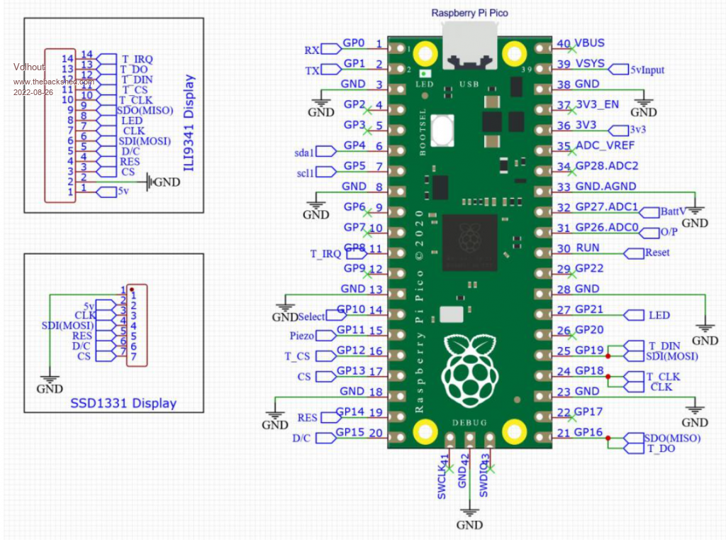Specifying GPn pins - never pin numbers - is the best way. That way a design is transferable to any of the Pico clones without modification, no matter how many pins it has or how they are arranged. Showing pin wiring diagrams is pretty but is only applicable to that one model of RP2040-based device. Obviously, this can get a bit out of hand, but if you look at the circuit drawings I produce for my PCBs, you'll see that each "circuit module" is labelled with GPn destinations and the Pico is shown separately. It would be trivial to convert those drawings for *any* RP2040-based module. Mick Zilog Inside! nascom.info for Nascom & Gemini Preliminary MMBasic docs & my PCB designs |