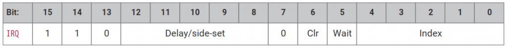 Here is how I think the IRQ and WAIT interrupt flags work in regard to the "If the MSB is set, the state machine ID (0…3) is added to the IRQ index, by way of modulo-4 addition on the two LSBs" thing. The following clues from the data sheet are relevant. From the WAIT instruction: The flag index is decoded in the same way as the IRQ index field: if the MSB is set, the state machine ID (0…3) is added to the IRQ index, by way of modulo-4 addition on the two LSBs. For example, state machine 2 with a flag value of '0x11' will wait on flag 3, and a flag value of '0x13' will wait on flag 1. This allows multiple state machines running the same program to synchronise with each other. From the IRQ instruction: The modulo addition bit allows relative addressing of 'IRQ' and 'WAIT' instructions, for synchronising state machines which are running the same program. Bit 2 (the third LSB) is unaffected by this addition. I am looking at this from the point of view of compiling instructions for WAIT and IRQ. I initially thought I would need this Modulo-4 thing and apply it to the index, but I think this is not the case. This is a job for the PIO, NOT the programmer. This view is supported when I put instructions into the official PIOASM compiler. It doesn't know which State Machine it is compiling for, if you ask for interrupt 7, it gives you interrupt 7. ![]() The MSB of the index (B4) is set when the rel parameter is added to IRQ instruction. e.g. IRQ <irq-num> rel B0 to B2 hold the IRQ number 0-7. I guess B3 is unused. The programmer's/coder's job is not to modify the index, but just set B4 to tell the PIO State Machine it is running code that is shared by another state machine. When a PIO State Machine sees B4 set it knows one of two things a) the programmer is making life difficult for no good reason or b) it is running the same code as another (or more ) state machine. So B4 set tells a State Machine it its sharing code, it can't literally use the interrupt in the instruction as SM0 (adding 0 doesn't change it) will use that interrupt. It must do the Modulo-4 thing and get another value. The WAIT does the same thing so they end up with the same new interrupt and all is well. The only thing you would need to watch out for as a programmer would be when you want to use multiple interrupts when running shared code. Your just need to ensure any IRQ numbers selected don't resolve to the same IRQ as each other when the modulo-4 thing is done for any of the state machine sharing the code. @Pluto's table above shows the various combinations that could result in the same IRQ value and have state machines confusing each other. F4 H7FotSF4xGT |