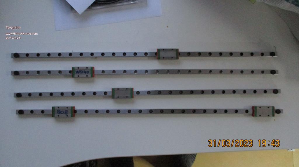 Playing about today, has revealed that the slide-blocks DO NOT want to slide from one rail to the other.  As soon as they hit the 2nd rail laid up against the end of the 1st one, they simply stop.  I was planning to make two 1M rails out of four 500mm rails, by stacking them, but the slide-blocks do not want to co-operate, so I have simply ordered two 1M lengths of rail to save my sanity in that area.