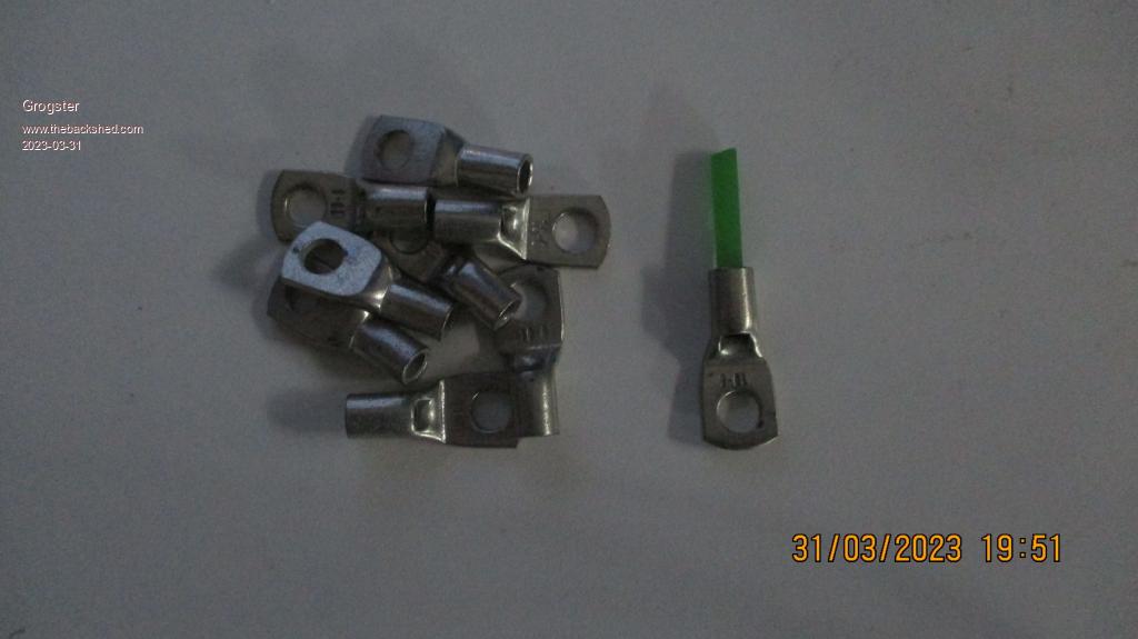 Hoist/counter-weight cable lugs/anchors/fixings.  Utilux standard electrical crimp connectors to suit the OD of the CNC "Cables"