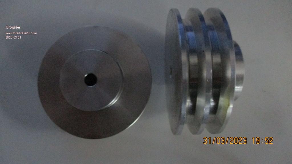 Hoist/sheave pully wheels - two of these back-to-back - a four-rope elevator concept to give more traction more then anything else - just like the real thing.