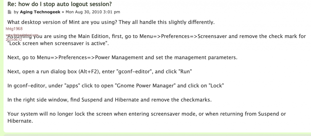 Can any of the Linux gurus tell me how to TOTALLY DISABLE the auto-logout "Feature"?