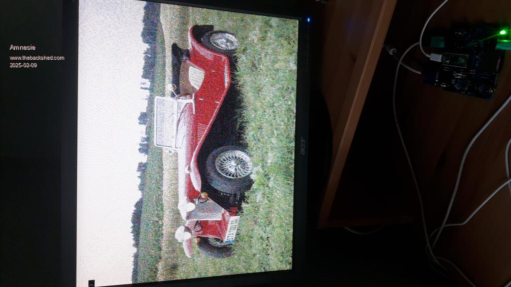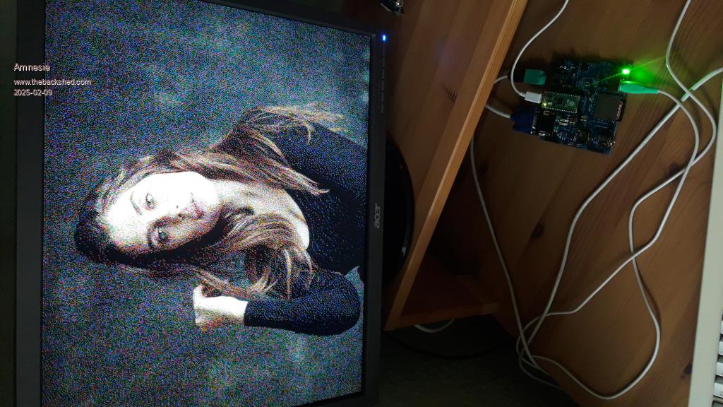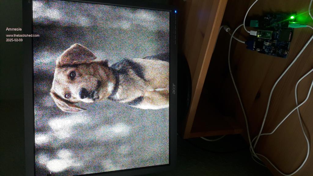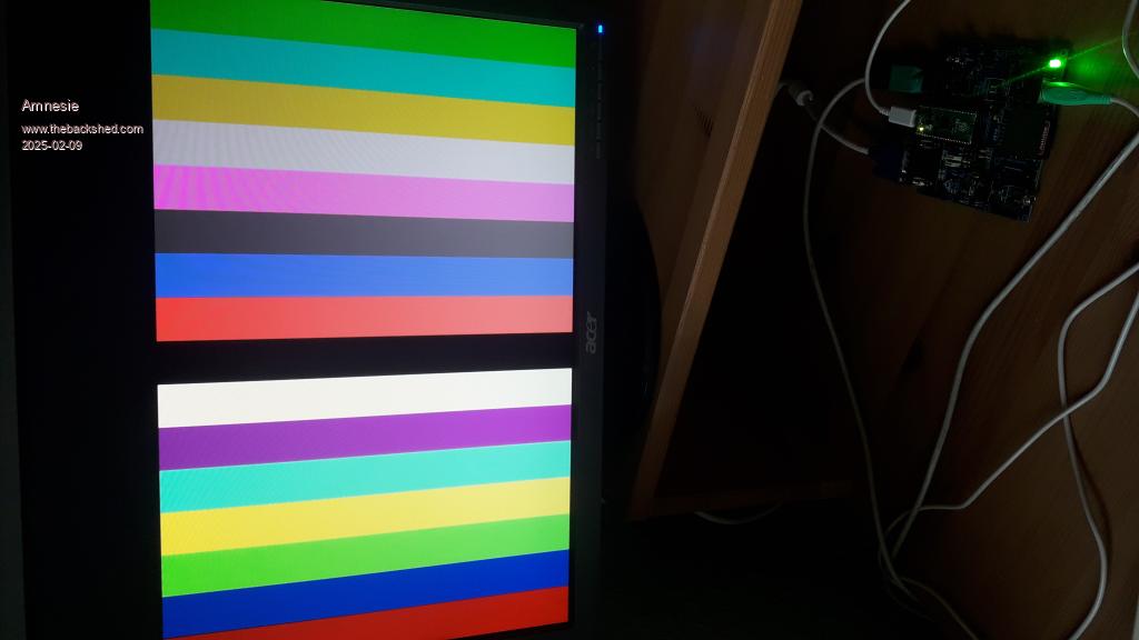 Hi Daniel When PicoMite VGA is loading a 24 bit RGB picture from SD card it does following Red Green Blue 7 6 5 4 3 2 1 0 7 6 5 4 3 2 1 0 7 6 5 4 3 2 1 0 | | | | +-----------------R G G B-------------+ This is the way it creates RGB121 from RGB888. It is not dithering, it is extracting. When you have RGB1111 you should also look at the Red bit 6 and Blue bit 6 to determine the closest matching rgb1111 color. This is called dithering (find the closest color). And with algorithms like Floyd (-or- "Apple"), you try to compensate the remaining mismatch in surrounding pixels (i.e. this pixel is a bit too red, let's try to find a color that is slightly less red in the adjacent pixels). Extraction may cause more noise than dithering. I think this also shows in the diference in noise level in your photo's from the actual screen, and the PC ditherings. Volhout P.S. I am not sure how this works on HDMI. When you set a color map, does it use this color map to create the 16 colors from an 24 bit RGB file on disk ? That would also require dithering. I guess it only works at output of pixels. Peter ? Edited 2025-02-10 02:10 by Volhout PicomiteVGA PETSCII ROBOTS |
