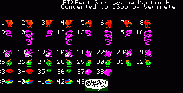 Here's another copy of a short program to display the game sprites. I've changed the sprite order to perhaps make coding easier, and added *Bert's curse bubble. Needs a late ver5.07.08 beta or release candidate firmware.