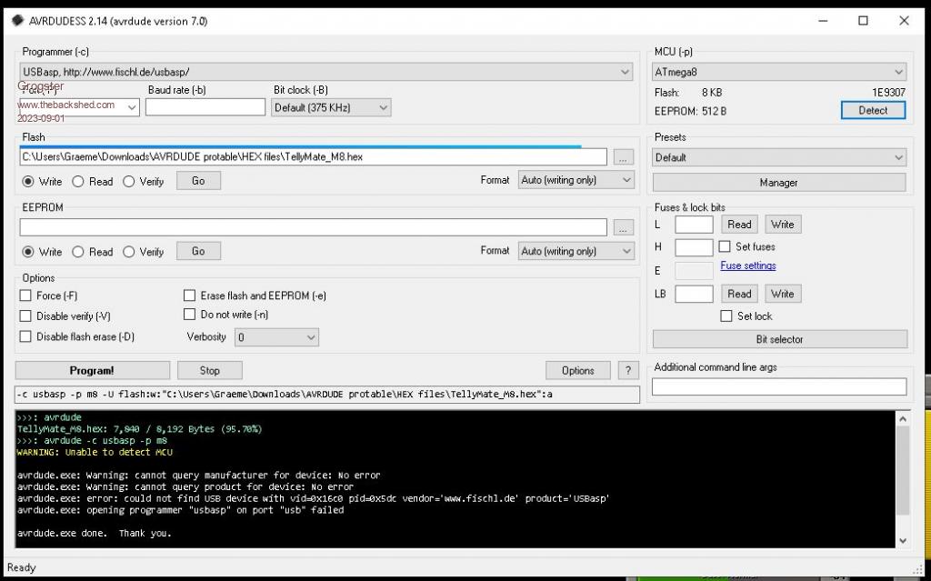 third line could not find USBasp. You need that bit fixed before you worry about the MEGA8 Jim VK7JH MMedit |