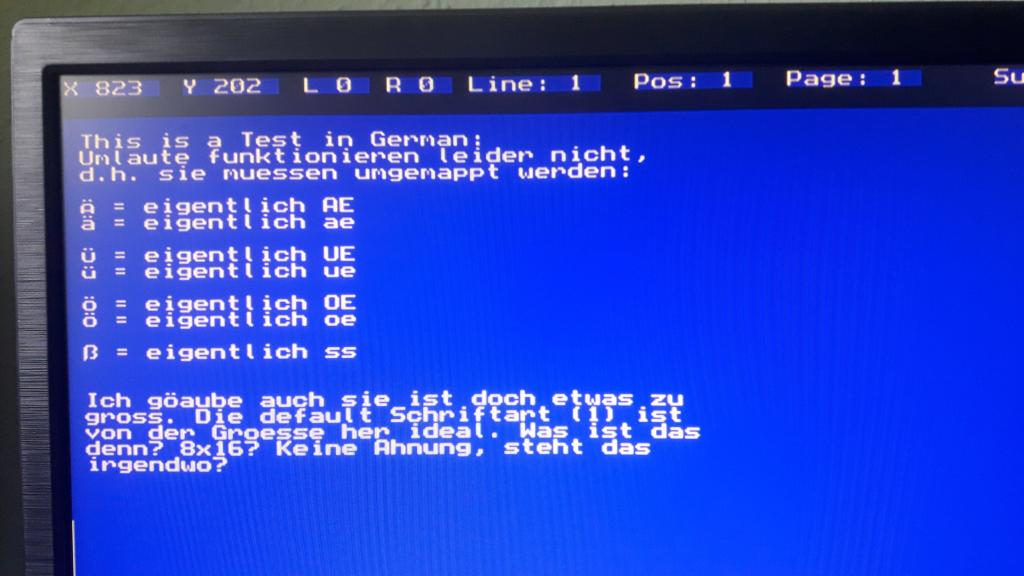 This was leading me to the false assumption the new DOS-font just has to be 224 and we are all good. For example the Unmlaut "ü" (kleines ü!) has the ASCII value of