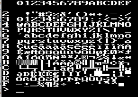 If you now fill the lines above with blank lines until the first character line is at 32, each letter is next to its character code.