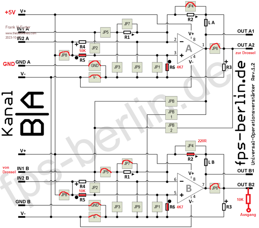 Connect the two non-inverting inputs together and see if that helps. A female Dupont wire from top of JP1 to top of other JP1 should work.